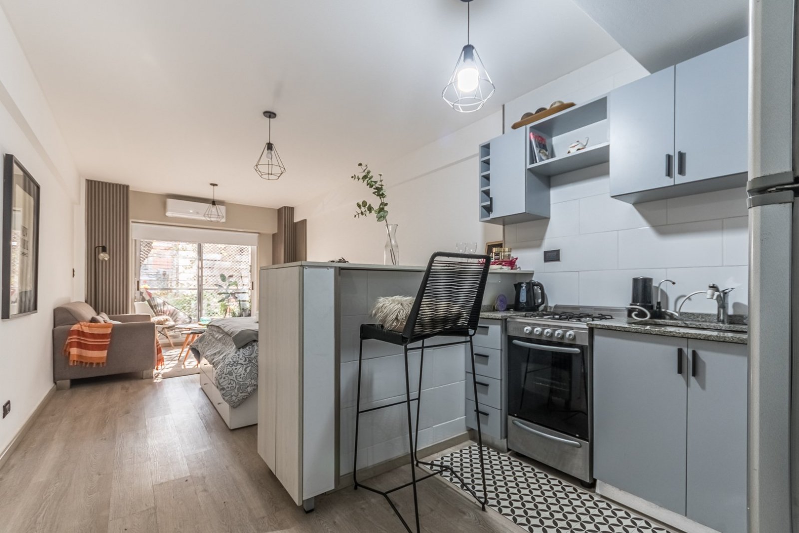 Monoambiente amoblado y equipado con estilo de diseño. Se ingresa al edificio por amplia entrada ascensor, palier semi-privado, hall de entrada con placard recibidor, baño completo, cocina semi integrada, horno a gas y equipamiento que incluye heladera y lavarropas incorporado, más los accesorios para uso diario. Sector dormitorio amplio, con lugar para guardado y ropa de cama, sector living room tv y zona de escritorio. Se ingresa al balcón con vista noroeste a la calle Acevedo. Luminoso. Amenities: en último piso se encuentra el salón aire libre con parrilla para eventos, en PB al fondo SUM, ingreso a la pileta y solarium. Edificio de 15 años de antigüedad en buen estado, A Mts de la Av. Corrientes, Estación Subte B: Malabia. Accesible: Si (Ley 23.314) Expensas a: $29.000 ABL: $6.236 Aysa: $7.500 - - - - Toda la información del aviso, incluyendo medidas, precio, impuestos, servicios, etc. son estimativos, sujetos a modificación y no vinculantes, según lo dispuesto en el art. 973, Cód. Civ. y Com. Toda la información del aviso, incluyendo medidas, precio, impuestos, servicios, etc. son estimativos, sujetos a modificación y no vinculantes, según lo dispuesto en el art. 973, Cód. Civ. y Com.