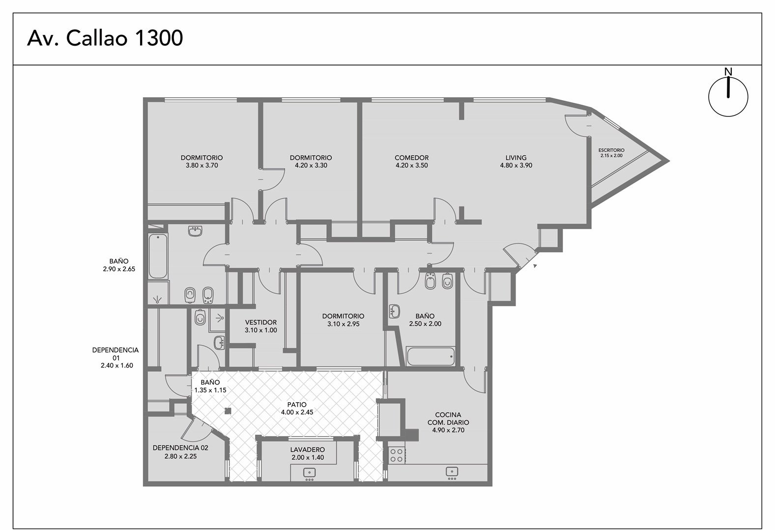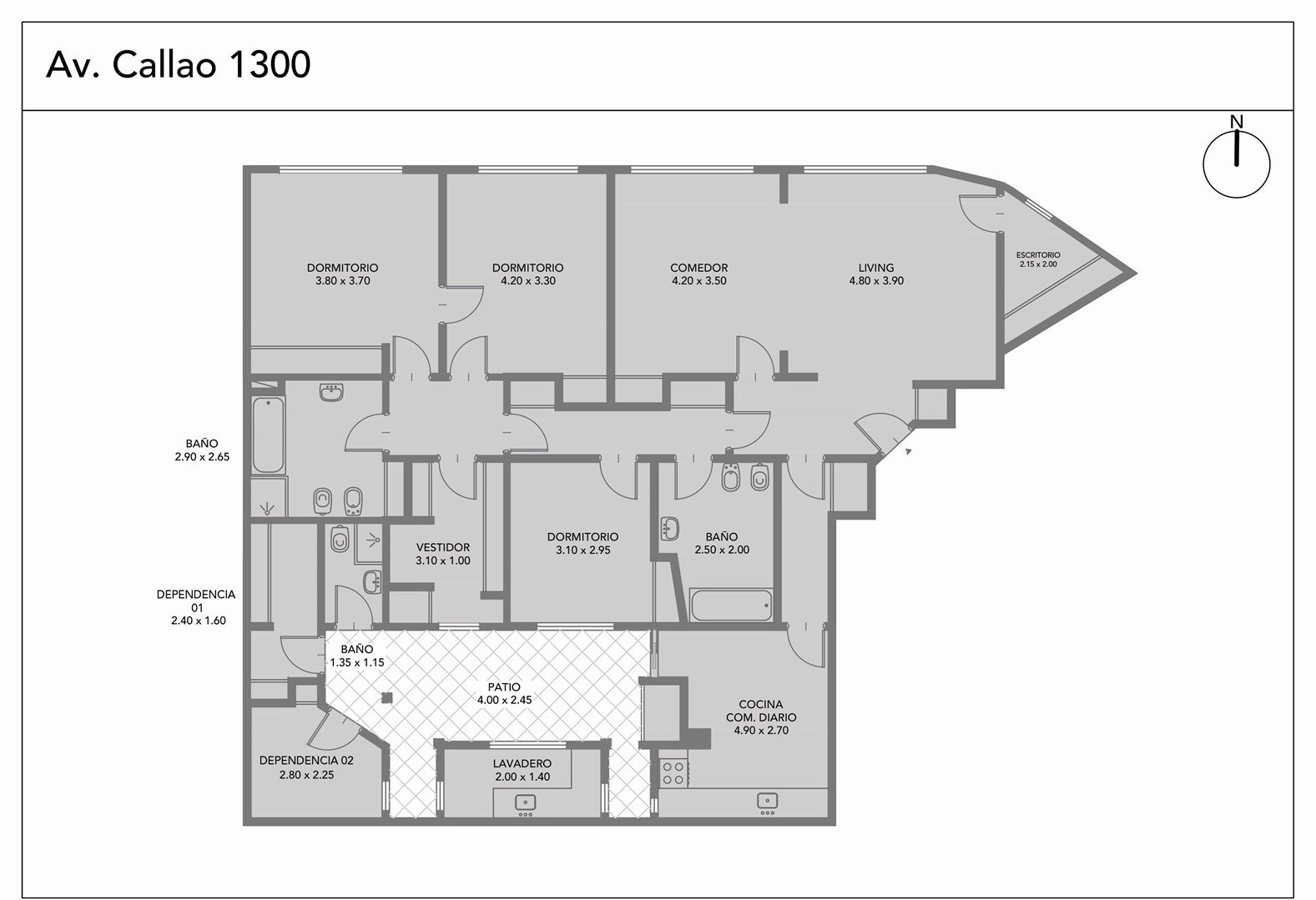 Atípica Planta Baja con la vista a Callao donde hace la panza. Manzana irregular. Orientación Noreste con buena luminosidad. (ver plano) . Techos de 3m. 3 amplios dormitorios. Living. Comedor. Bar o Escritorio. Patio. Vestidor. 2 baños completos. 2 dep con baño. Serv. Centrales. Baulera de 3,80 m2. Opción de Cochera doble a mts del edificio. Accesible Si (Ley 5.115). ABL $80.000, Aysa $51.000. Toda la información del aviso, incluyendo medidas, precio, impuestos, servicios, etc. son estimativos, sujetos a modificación y no vinculantes, según lo dispuesto en el art. 973, Cód. Civ. y Com.